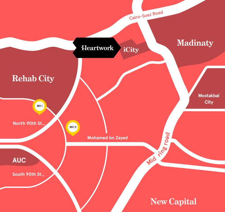 As the future is heading east, Heartwork's Location is central as it is a part of iCity at the heart of New Cairo overlooking the middle ring road a location that is very strategic for business owners.